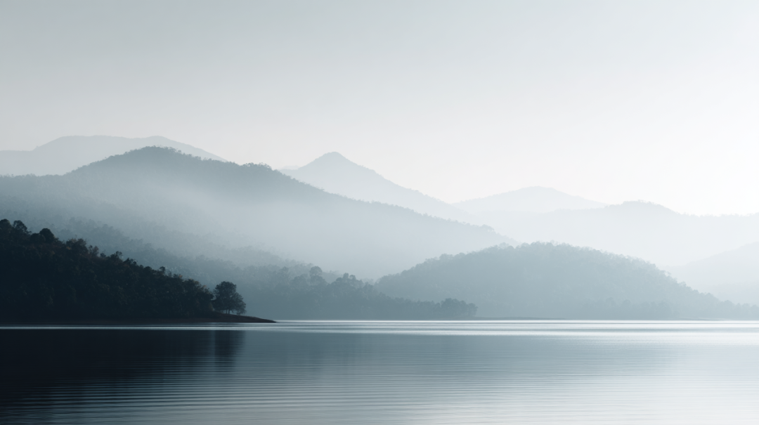 仿佛清晨雾岚未散,天光透过云层轻抚山谷,